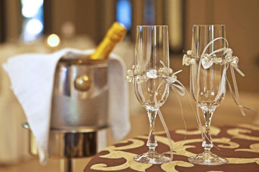 - Ένα μπουκάλι σαμπάνια κατά τη διάρκεια κοπής της τούρτας με 2 ποτήρια